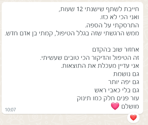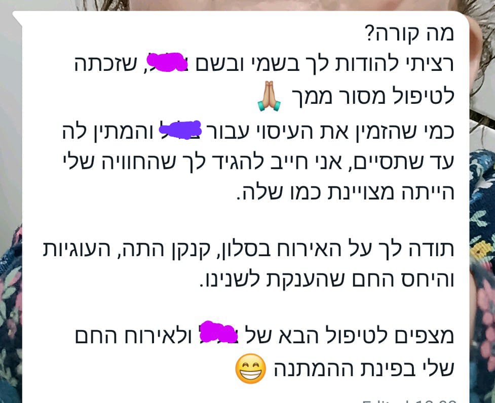 אלה הם רק חלק מהדברים שמטופלות אמרו לי במהלך ואחרי הטיפול ב"נאירה". מוזמנת להתרשם מהמלצות של לקוחות ולהגיע ליהנות בעצמך!