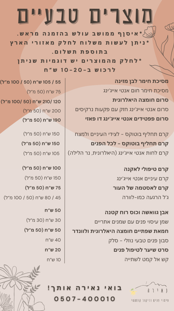 *המחירים וגודל המוצרים עשויים להשתנות מעת לעת. יש להתעדכן בטלפון 0507-400010