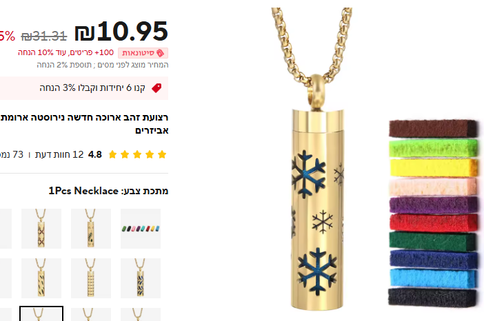 יש שלל סוגים שלל סוגים של שרשראות, חשוב לי לומר שמבחינת עיצוב השרשרת זה לא הדבר ה-כ-י מדהים שהייתי בוחרת לעצמי כשרשרת רגילה, אבל בזמנים מסויימים שצריך בהם עזרה קטנה של שמנים, כמו מבחן, לימודים, נהיגה או סיטואציה מלחיצה כלשהי, ניתן לטפטף לשרשרת שמן אתרי רלוונטי עם הפעולה הרצויה ולשכוח מכמה יפה או לא יפה השרשרת.