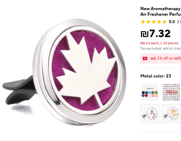 וגם כזה שמתלבש על המזגן באוטו. לפני שמתחילים בנסיעה מטפטפים כמה טיפות של השמן שרוצים, תופסים את זה על המזגן – ויוצאים לדרך. אני משתמשת בזה בעיקר בנסיעות בשעות הערב כדי לעזור לעצמי להישאר ערנית או בנסיעות של פקקים שבא לי להישאר רגועה בנהיגה 🙂